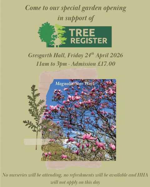 Gresgarth Hall can boast 5 trees that are the largest recorded of their species and a further 40 that are champions of Lancashire, highlighting the garden as one of the most important botanical collections in this region. A wonderful opportunity to see how new species are performing in our current climate and have potential for wider planting in the future.